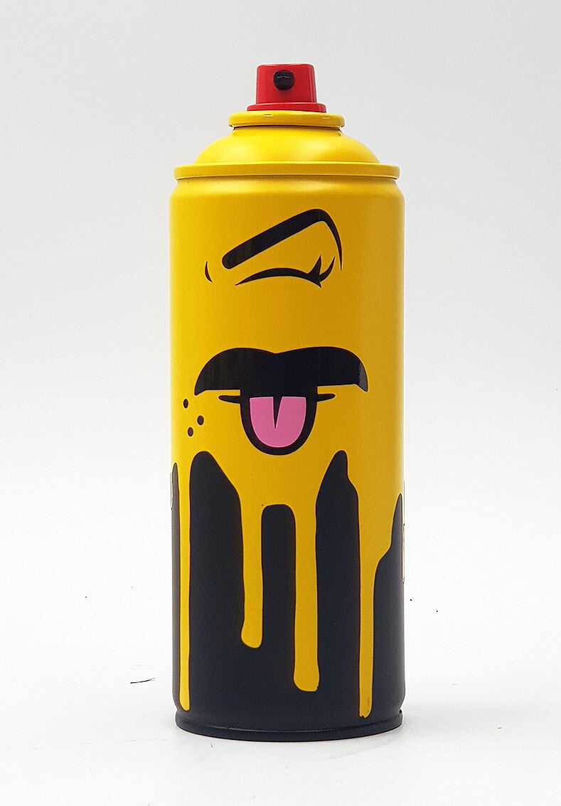 Peinture et stickers vinyls sur bombe aérosol vide.