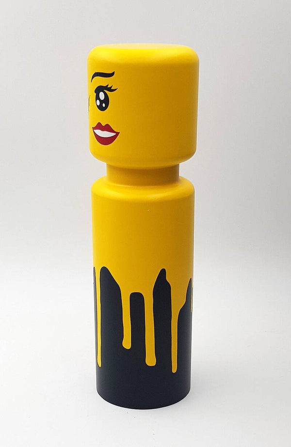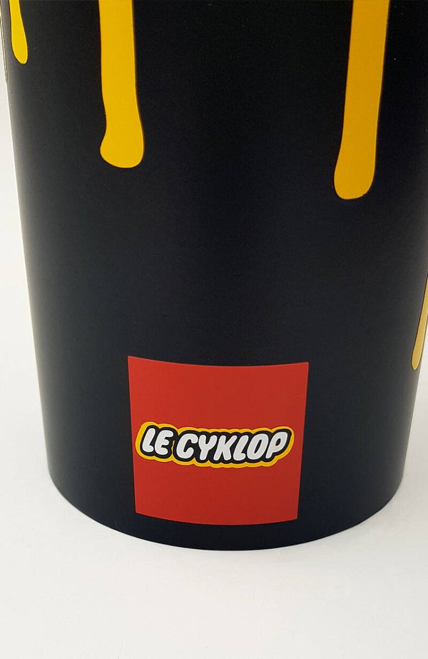 Bombe aérosol et pochoir sur potelet anti stationnement en acier dit "àgorge". Pièce unique.