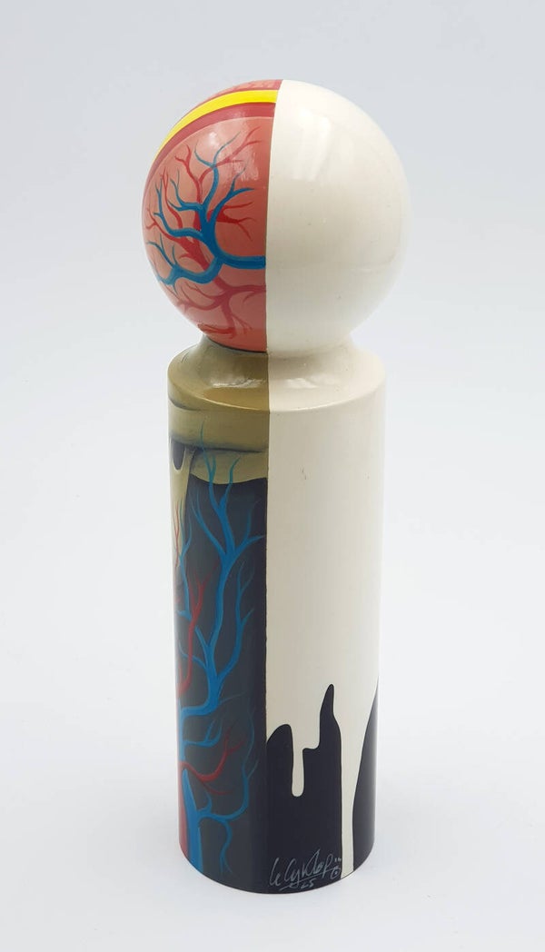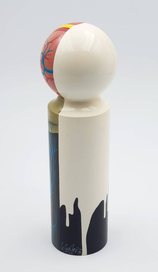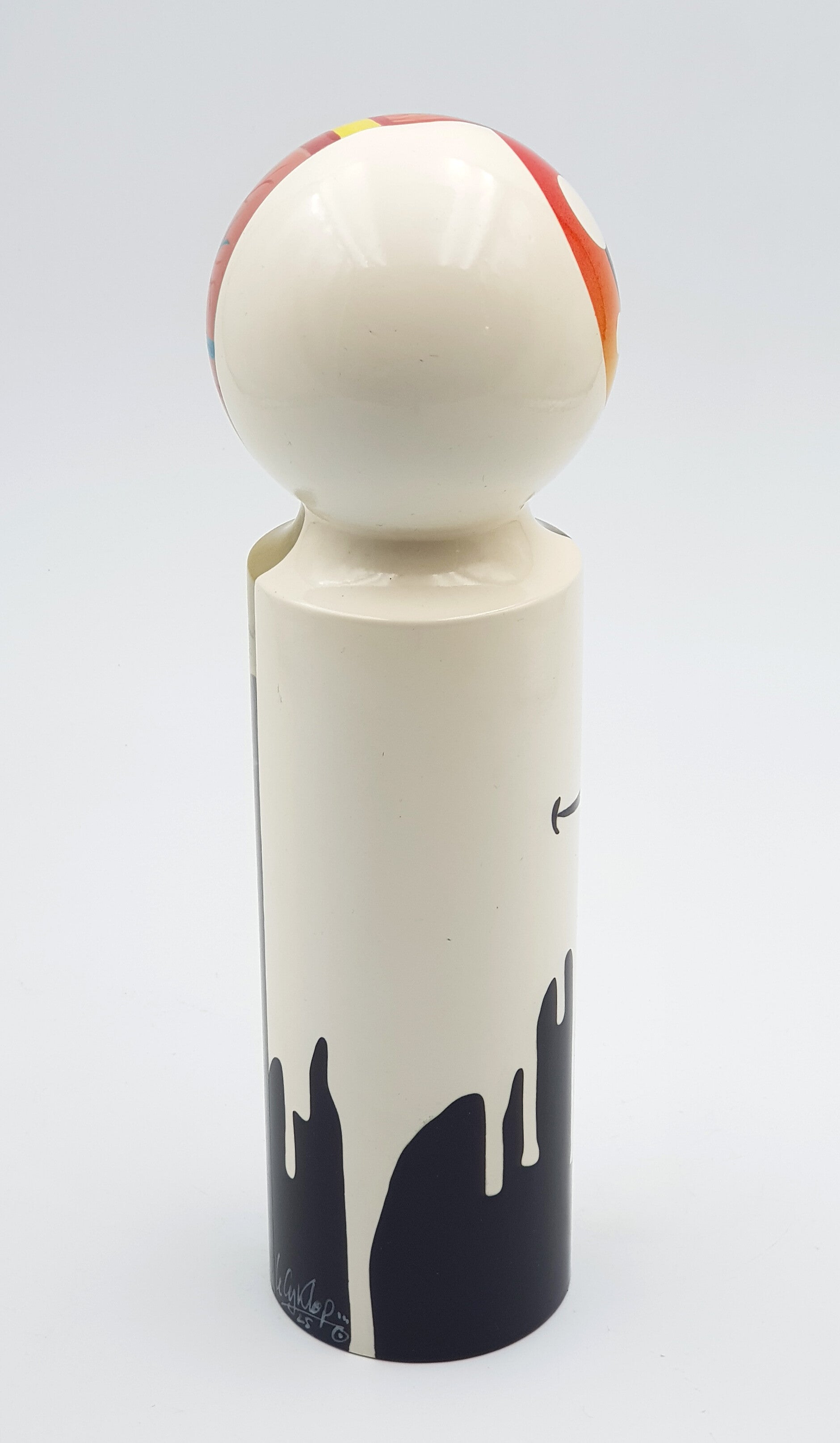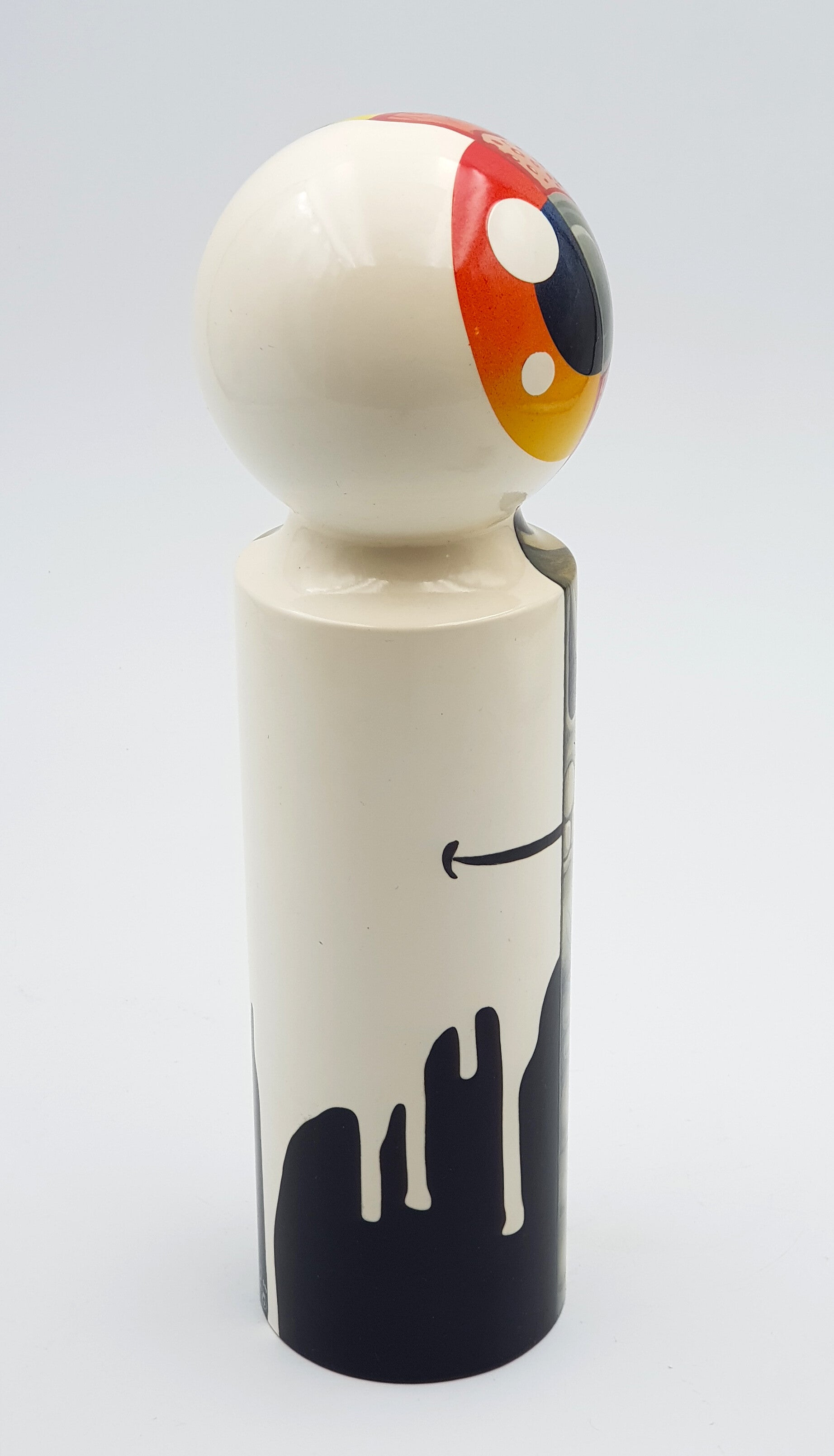 Bombe aérosol et peinture acrylique sur potelet anti stationnement parisien. Signé Le CyKlop, 2025Hauteur : 30 cm - Diam. : 8 cm