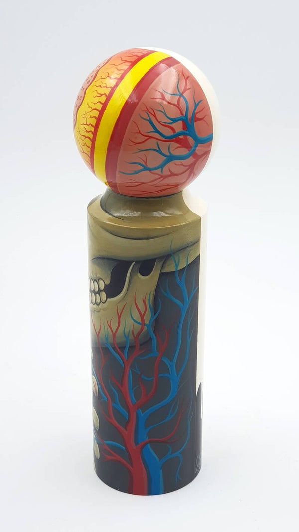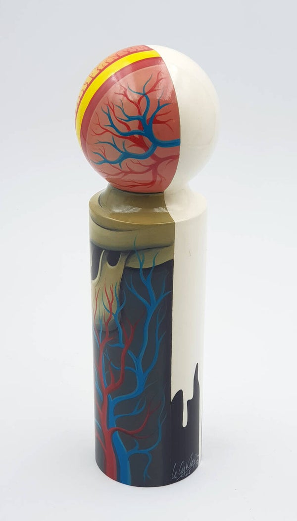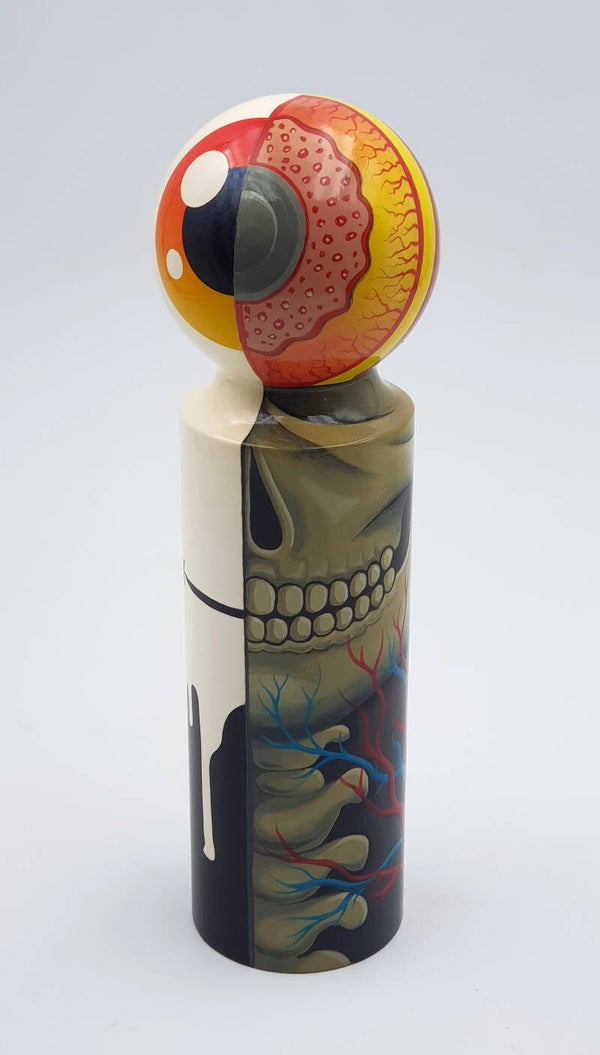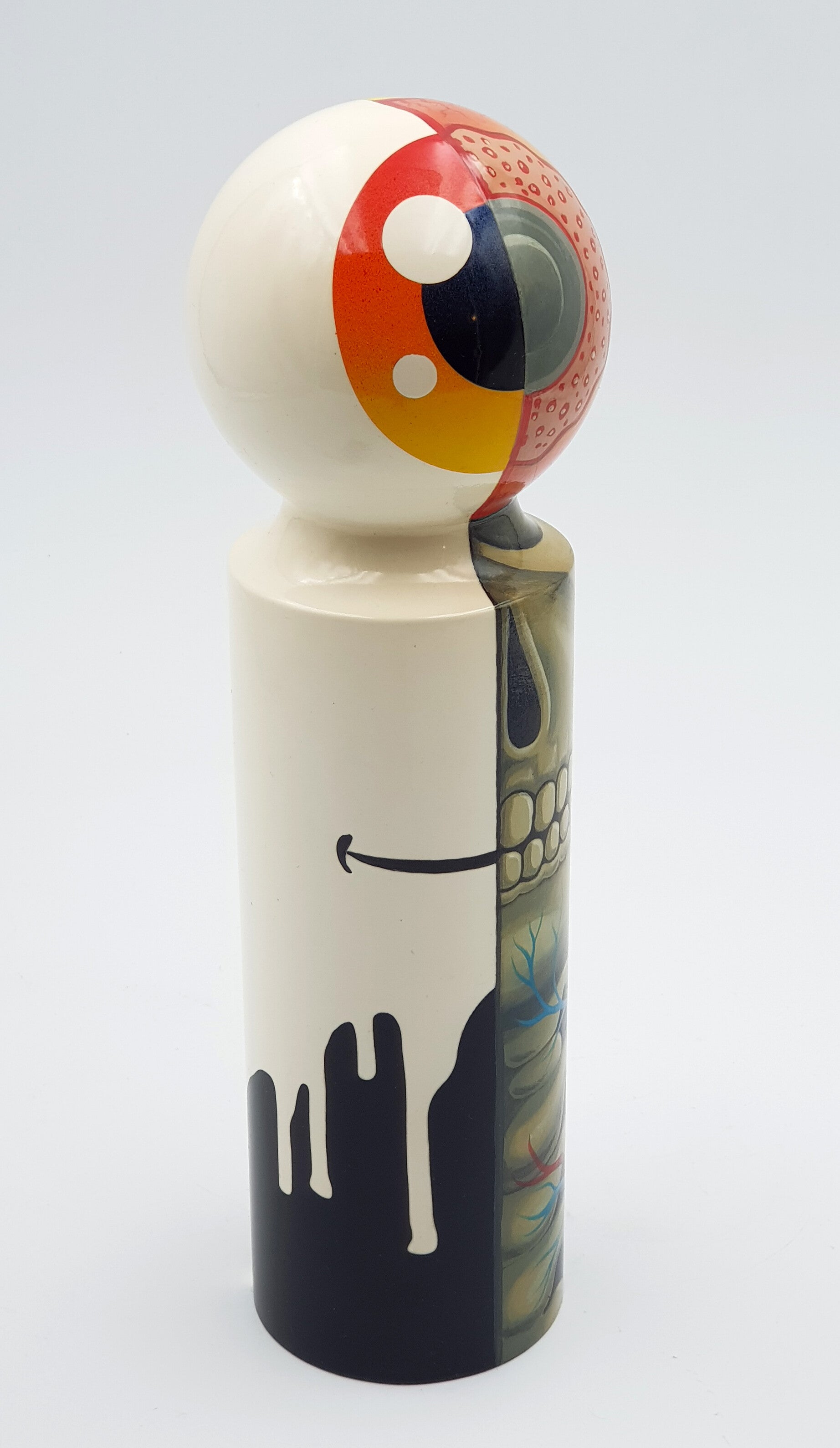 Bombe aérosol et peinture acrylique sur potelet anti stationnement parisien. Signé Le CyKlop, 2025Hauteur : 30 cm - Diam. : 8 cm