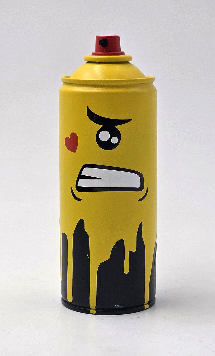 Peinture et stickers vinyls sur bombe aérosol vide.