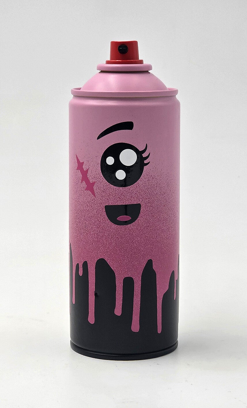 Peinture et stickers vinyls sur bombe aérosol vide.