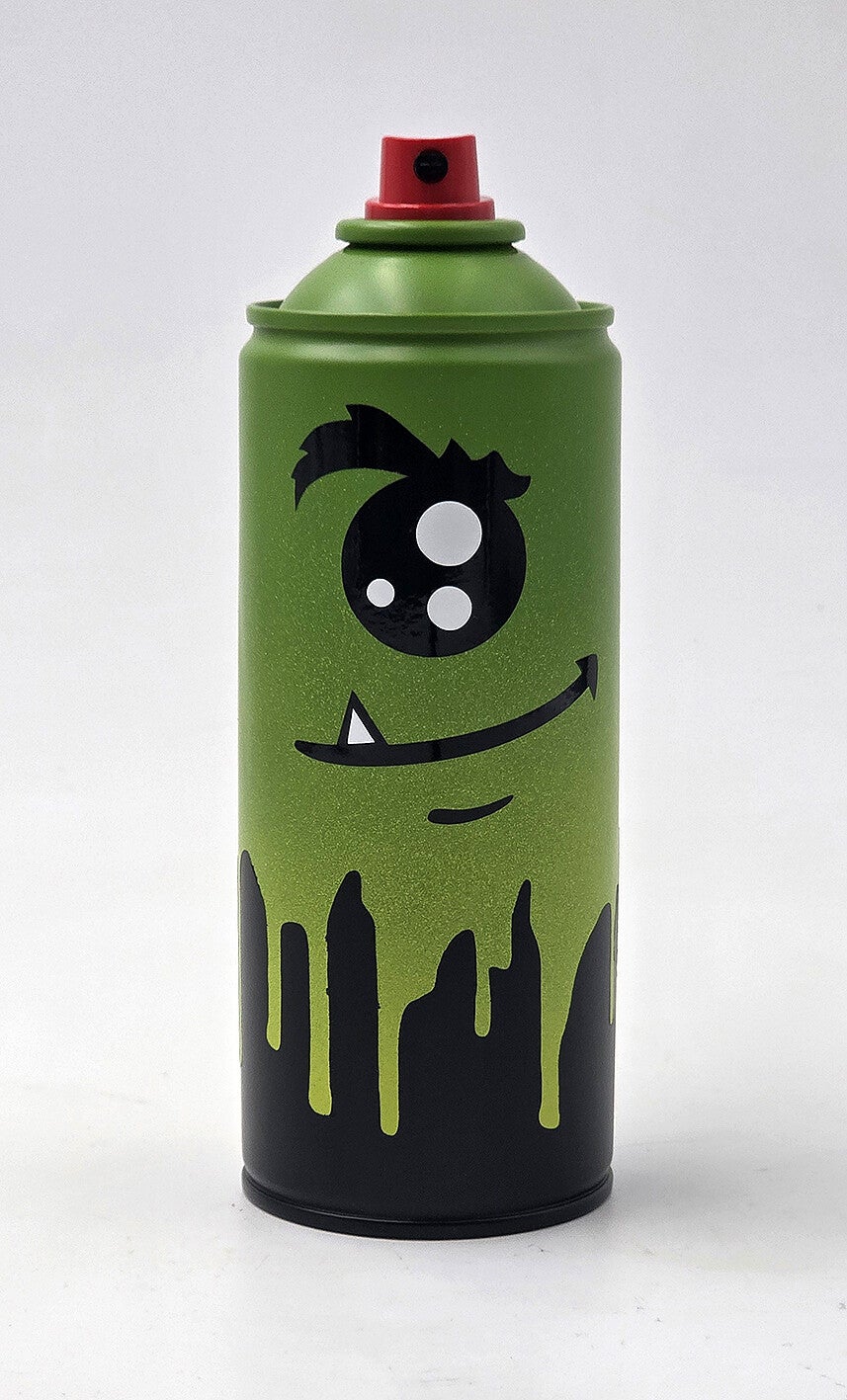 Peinture et stickers vinyls sur bombe aérosol vide.