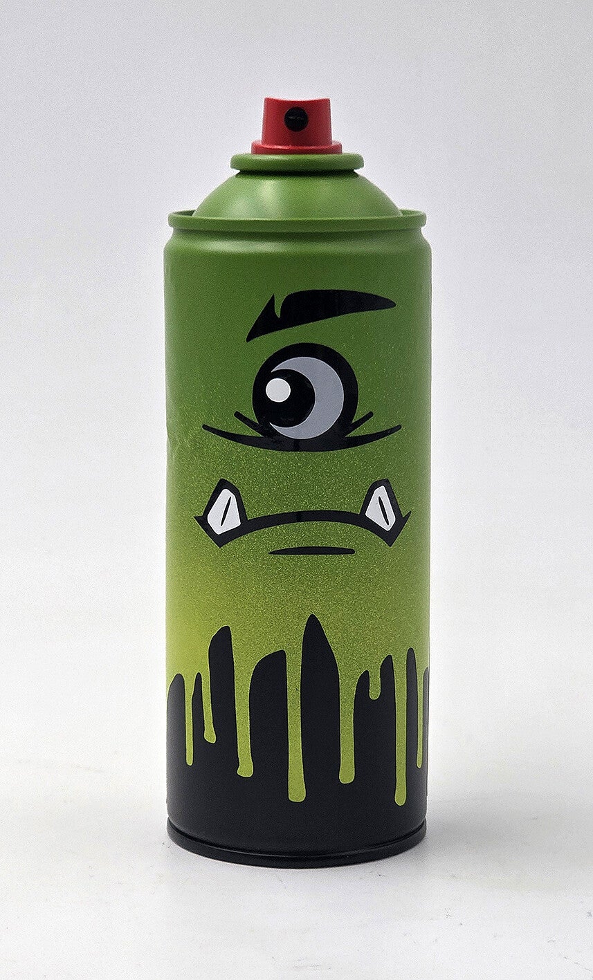 Peinture et stickers vinyls sur bombe aérosol vide.