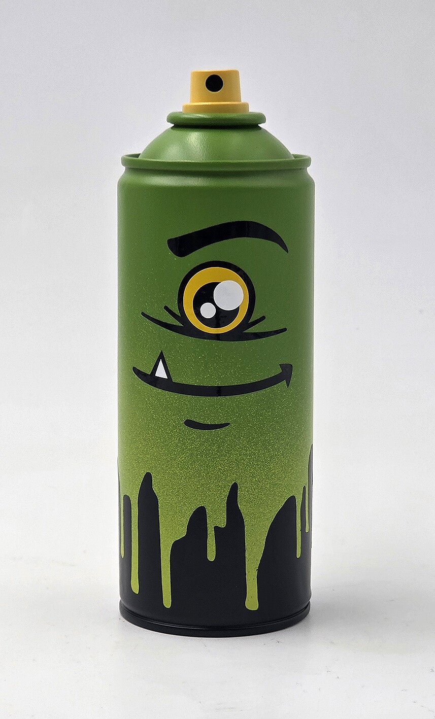 Peinture et stickers vinyls sur bombe aérosol vide.