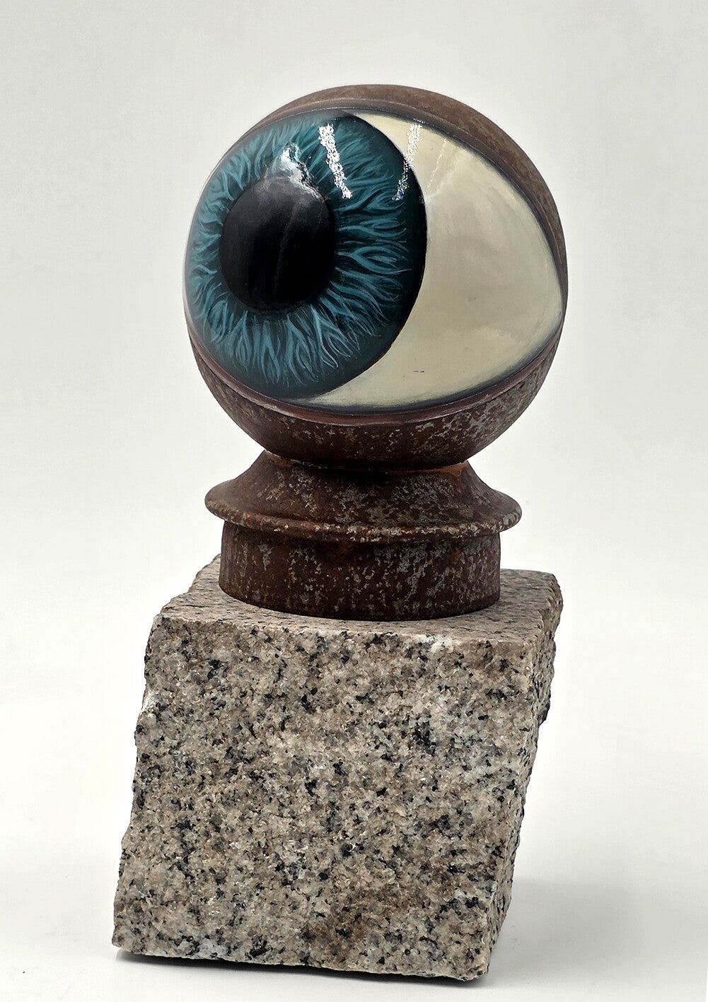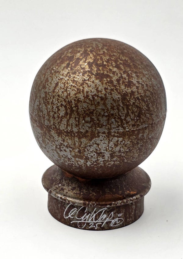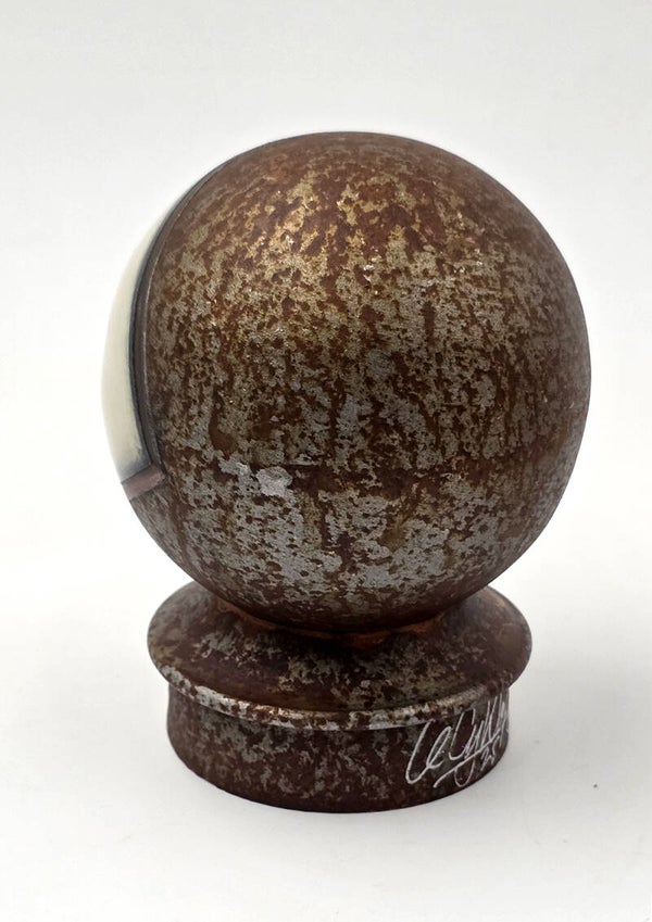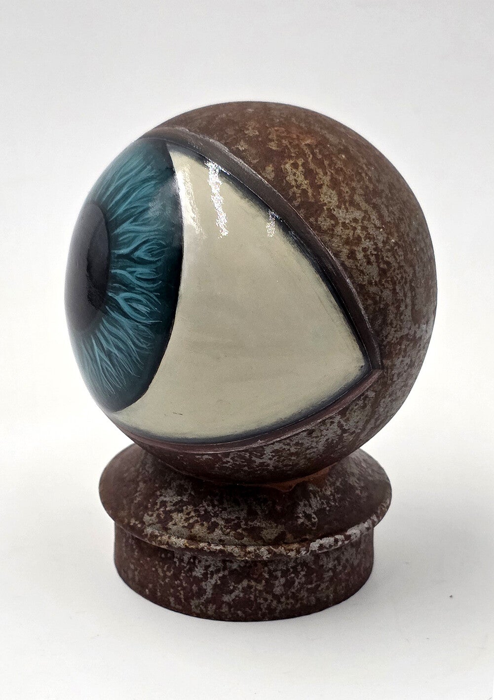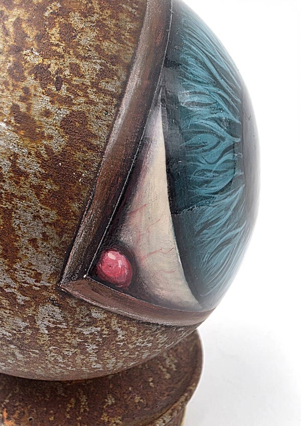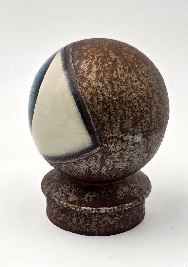 RÉEL / irRÉELPeinture acrylique et bombe aérosol sur tête de potelet anti stationnement parisien.Rouille naturelleDimensions : Haut. 10 cm - Diam. : 10 cmSigné au dos