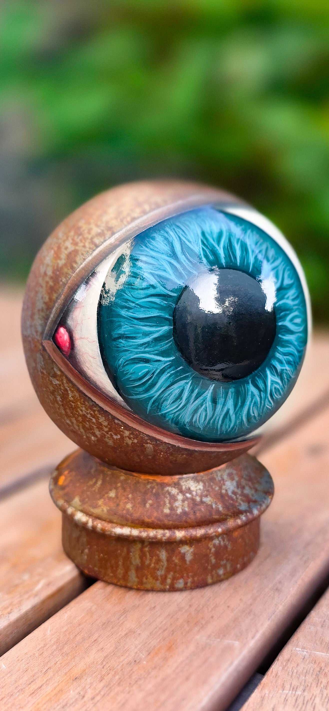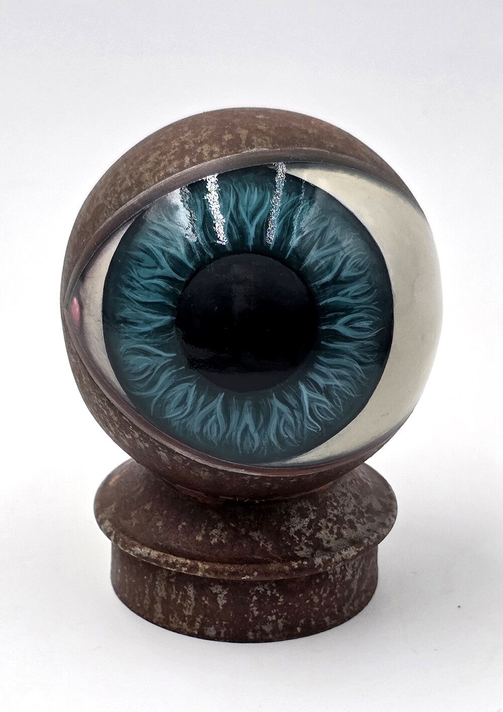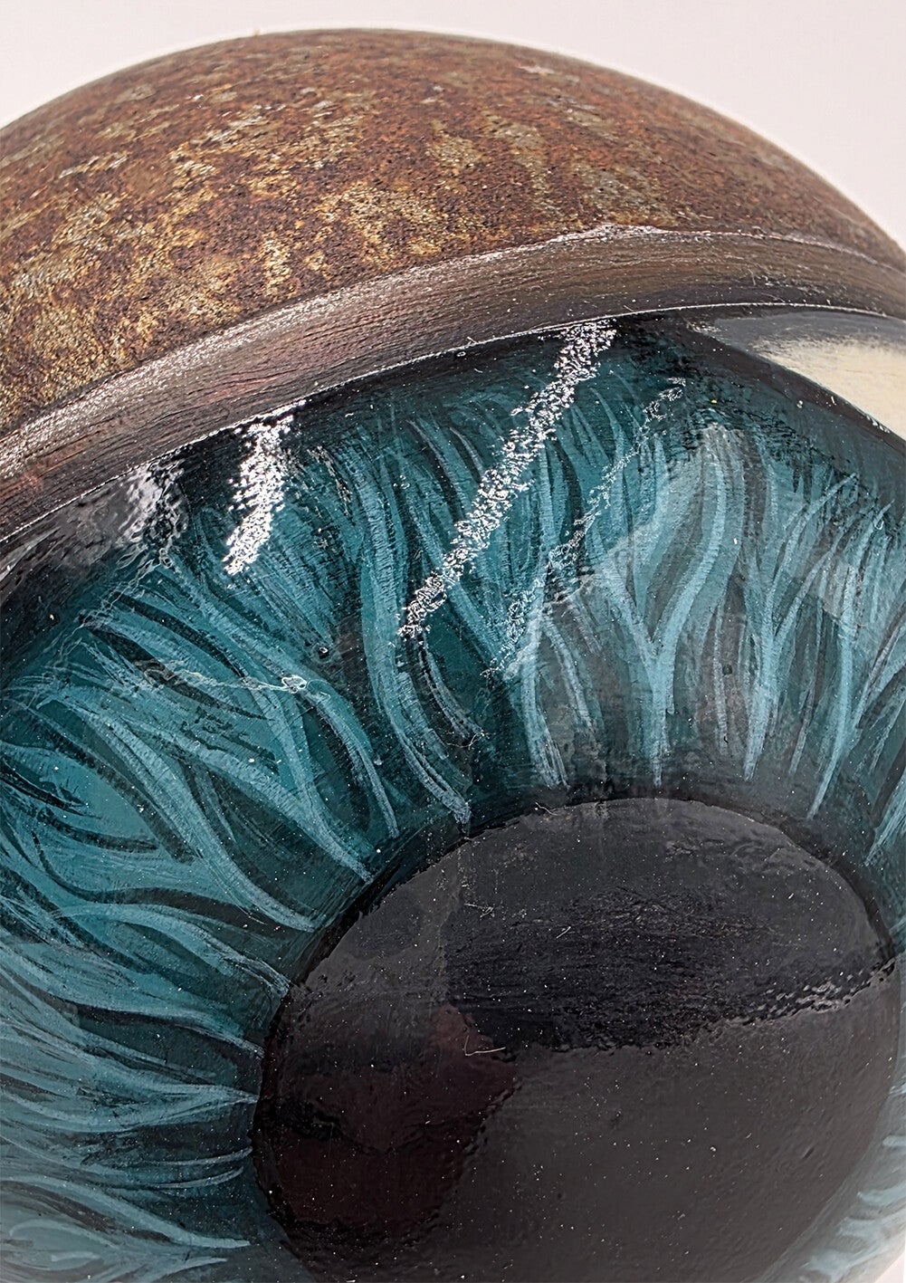 RÉEL / irRÉELPeinture acrylique et bombe aérosol sur tête de potelet anti stationnement parisien.Rouille naturelleDimensions : Haut. 10 cm - Diam. : 10 cmSigné au dos