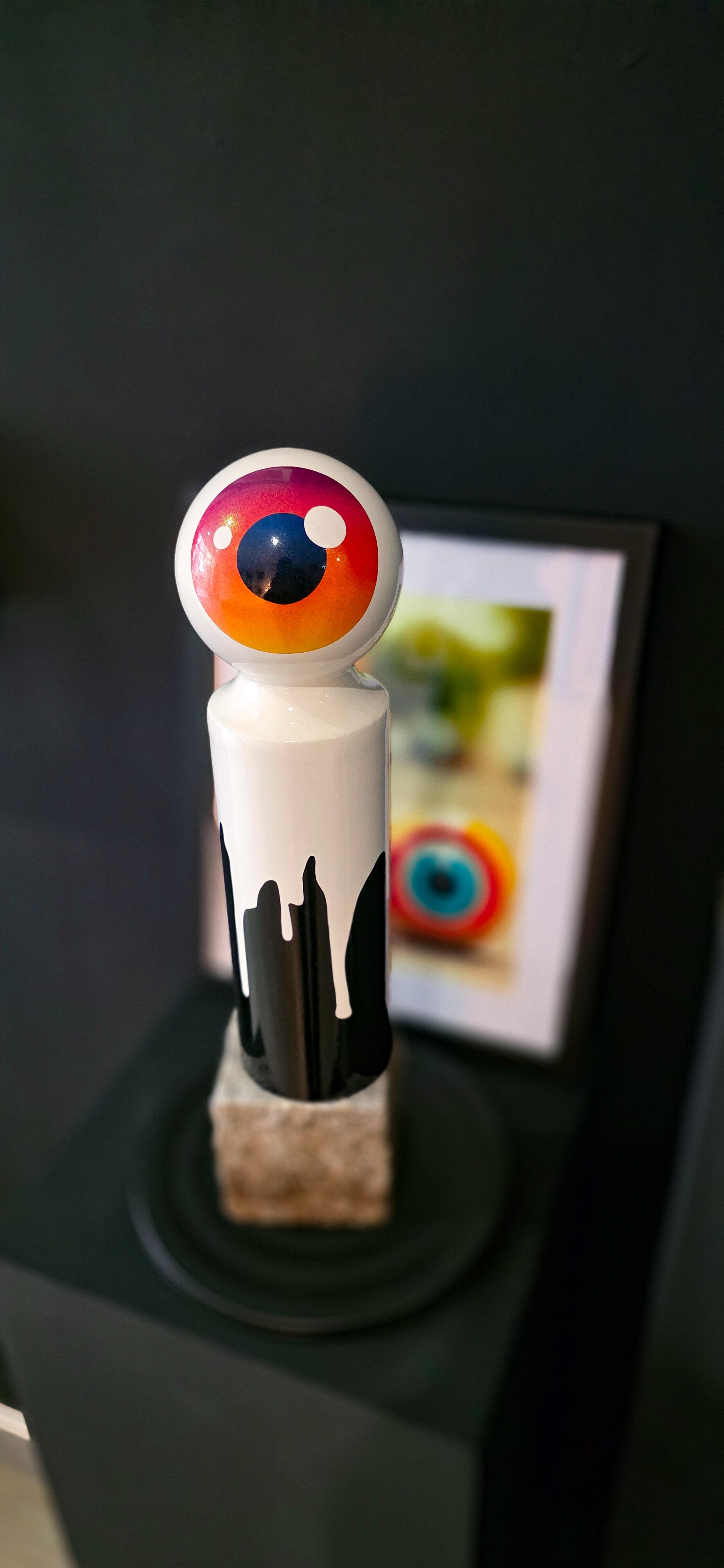 Technique : Bombe aérosol et pochoirs sur potelet anti stationnement en métal. (Modèle parisien).