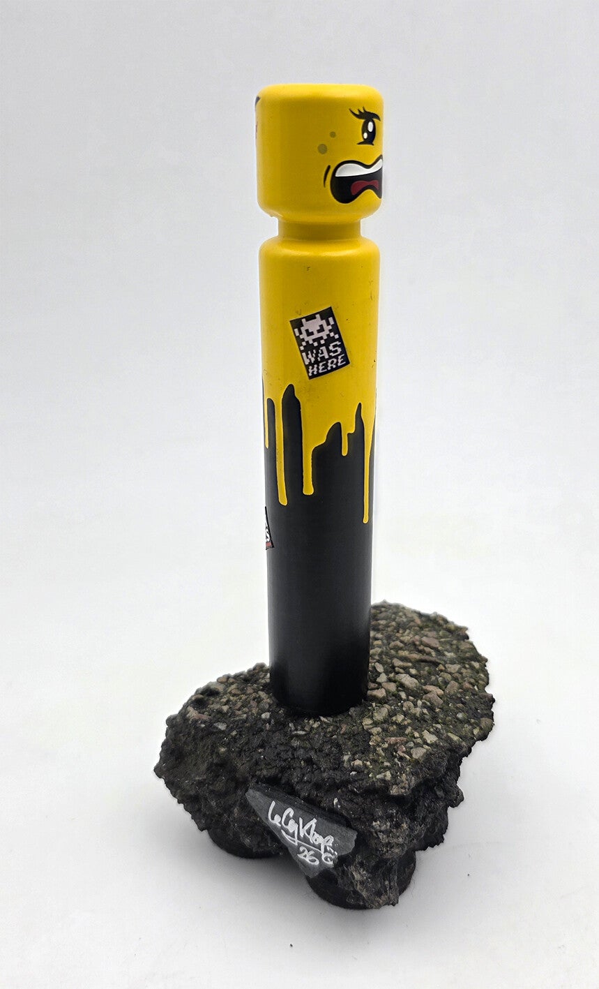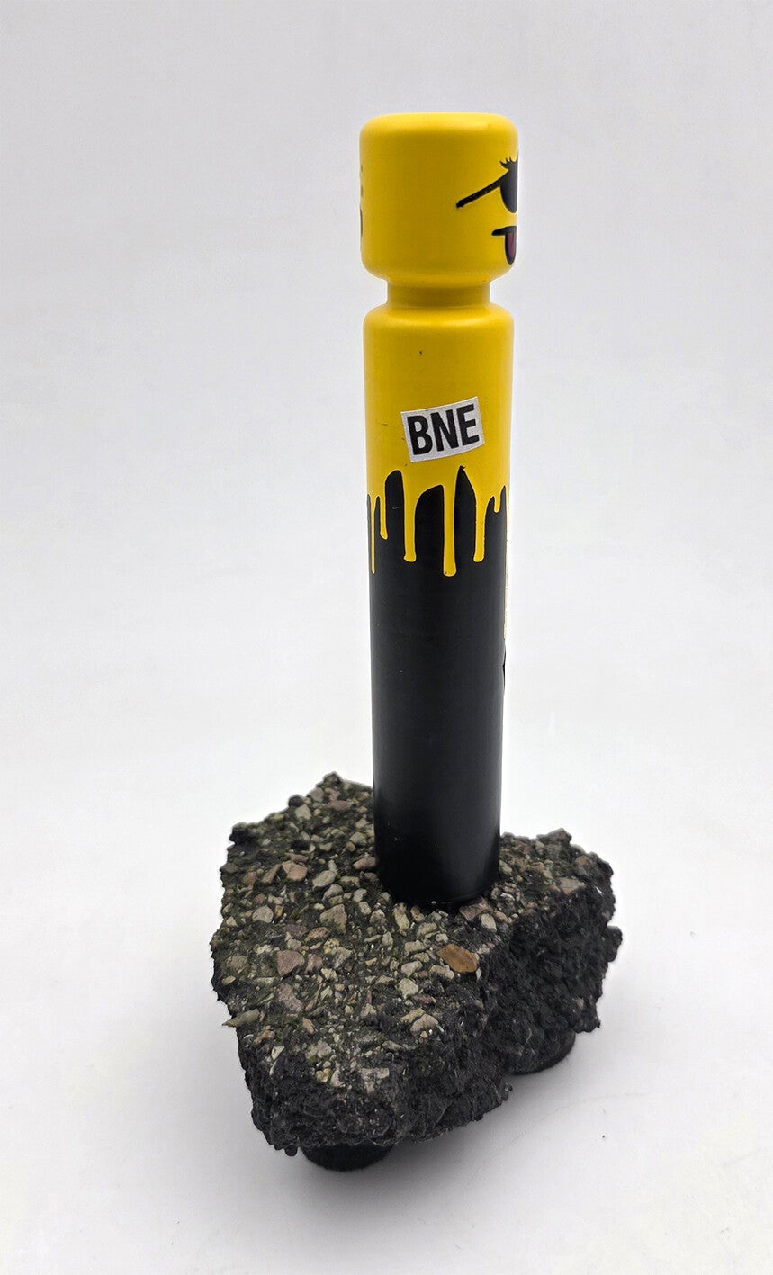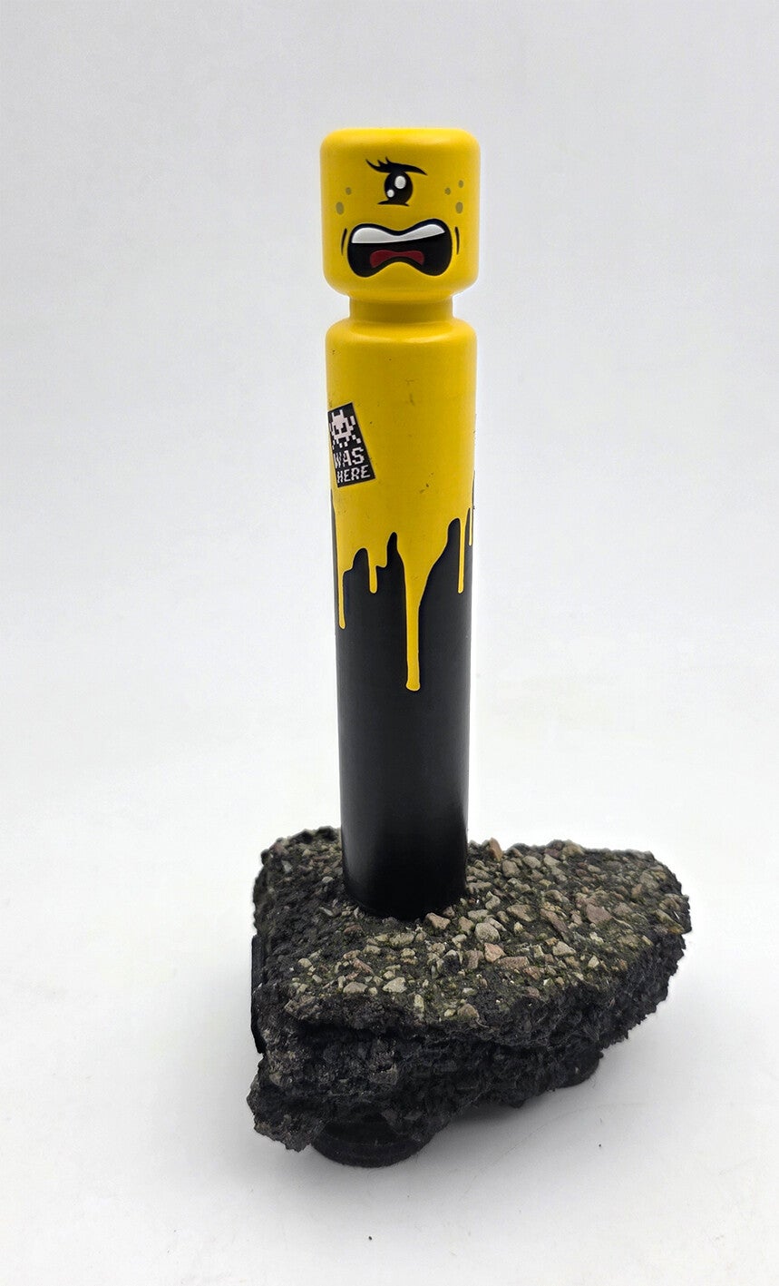 L'Égo CyKlop miniature, figurine recto-verso fixée sur un morceau de macadam. Pièce unique.Signature au dessous.