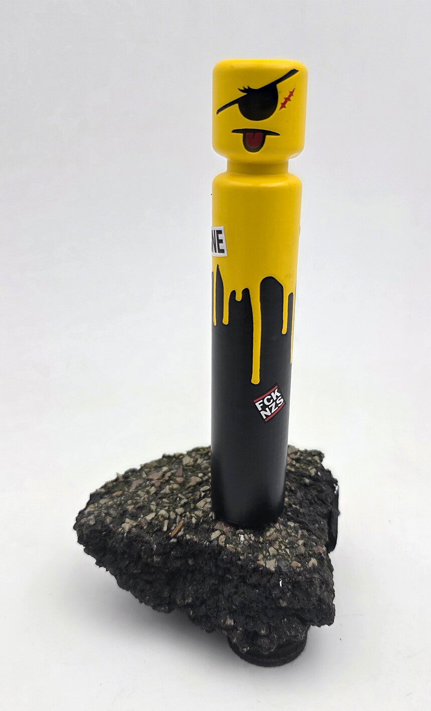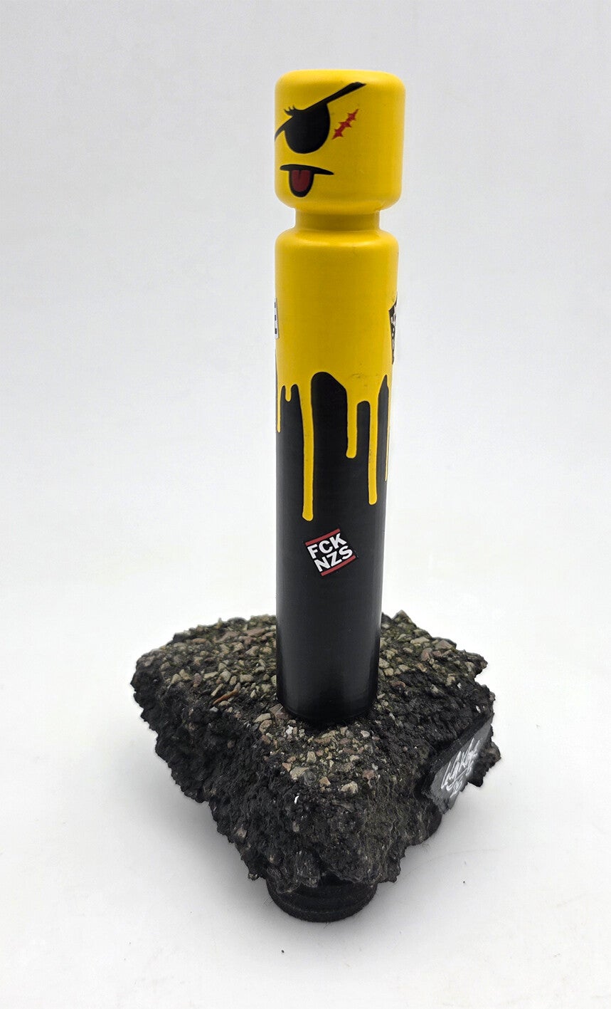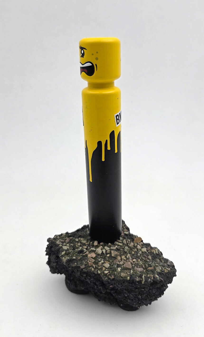 L'Égo CyKlop miniature, figurine recto-verso fixée sur un morceau de macadam. Pièce unique.Signature au dessous.