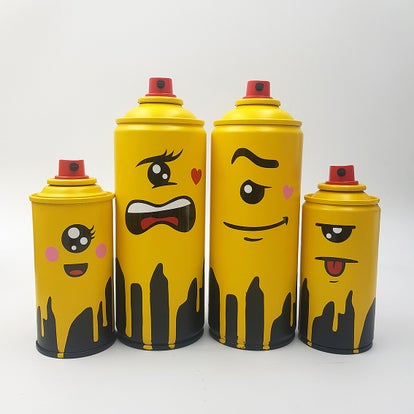 Bombe aérosol, peinture et stickers vinyls.
